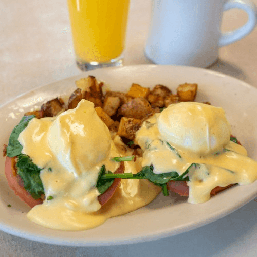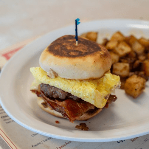Two eggs cooked your way, served with home fries, choice of toast, and choice of bacon or sausage