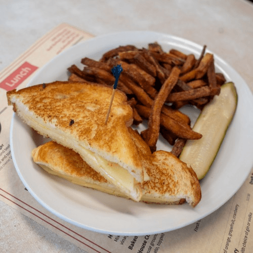 French toast served with real VT maple syrup, two eggs, home fries, and choice of bacon or sausage
